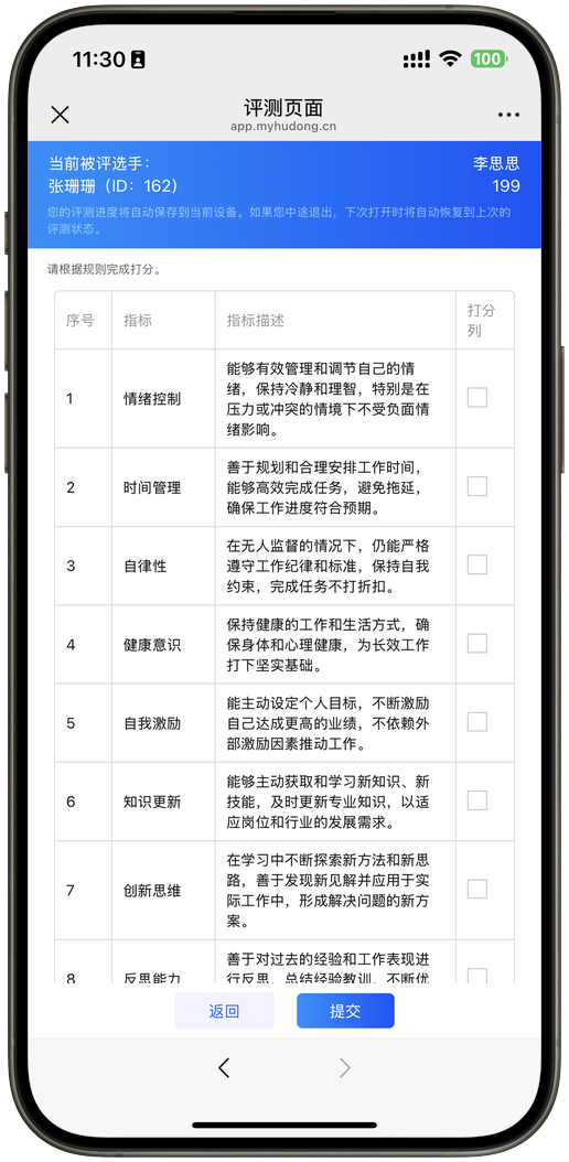 提供年终绩效、晋升评审、团队评价、培训考核、人才选拔、项目评估等多种评测方案。