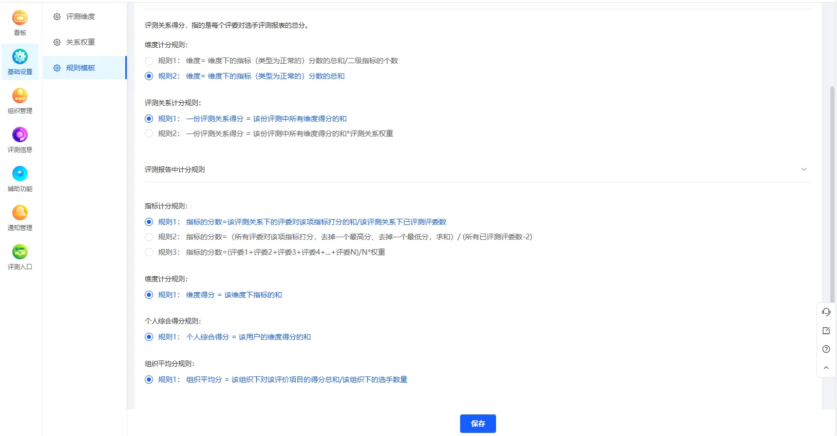 – 设置不同评分规则(最高分、最低分、保留小数位)