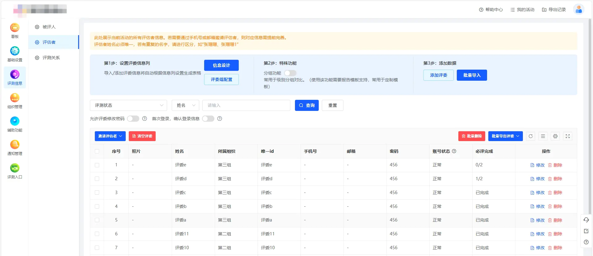 - 流程可控性:HR可以实时查看哪些评委已完成评分,针对性催办而不影响其他人