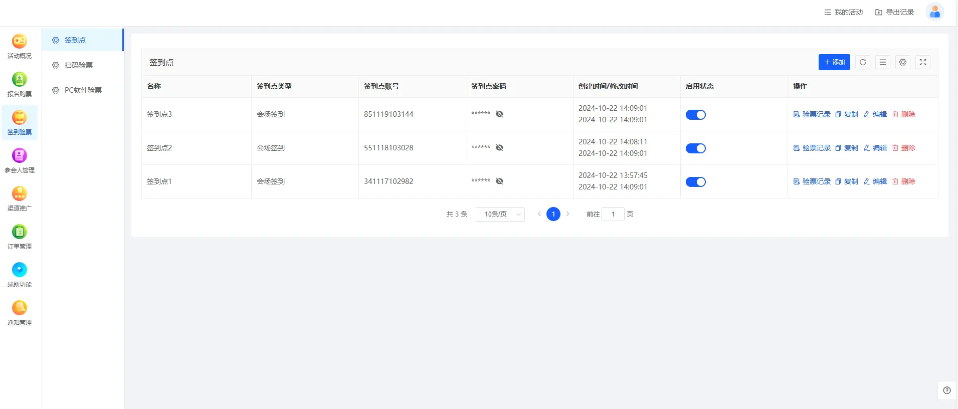 系统还能设置签到次数限制,比如VIP票只能签到一次,普通票可多次进出等精细化管理。