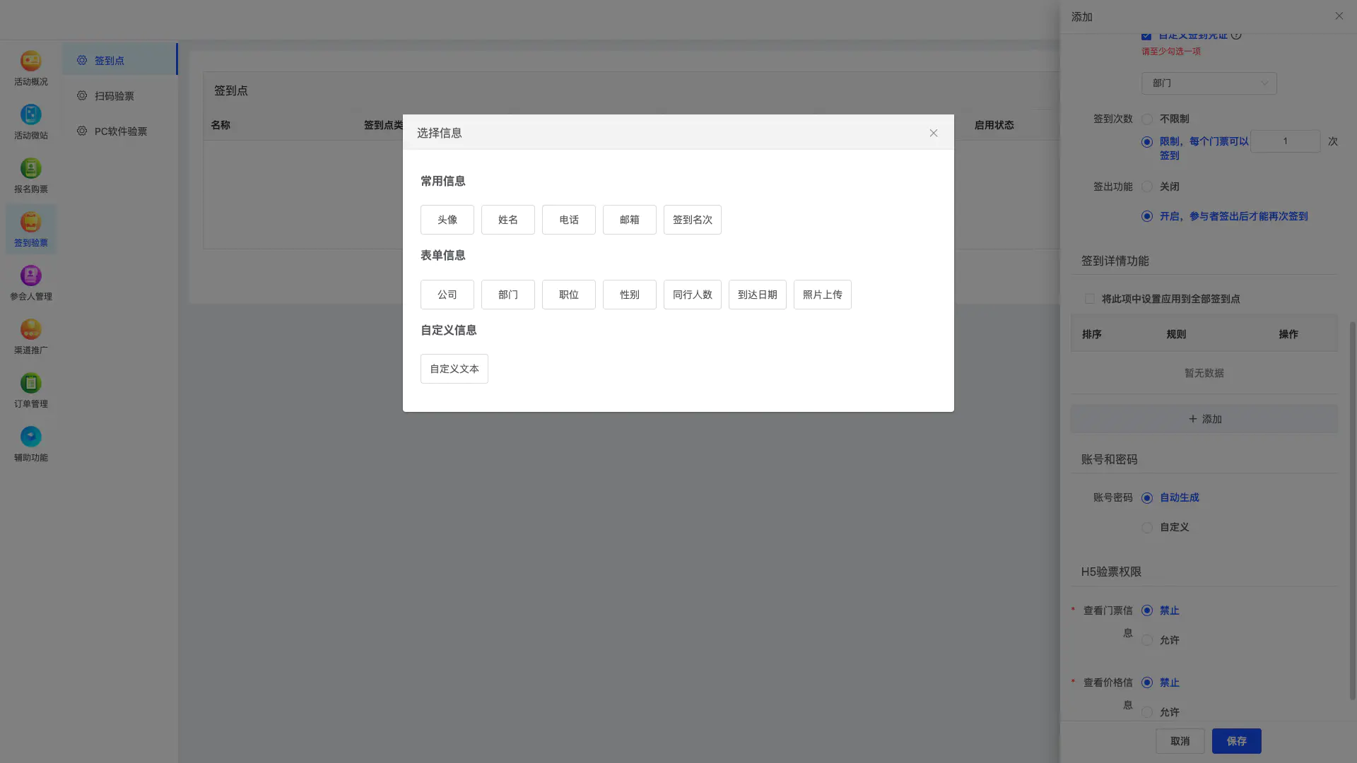 大型会议往往需要分区域签到,这时权限设置就特别重要: